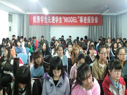 3月26日,外国语学院举办优秀学生“MODEL”先进事迹报告会。学院2014级全体学生聆听报告会。 外语学院6名优秀学生与大家分享他们精彩的大学生活、讲述他们的成长历程,从最初的紧张浮躁到现今的成熟稳重。他们用自身的经历给同学们树立学习的榜样。 优秀学生MODEL先进事迹报告会作为外国语学院学风建设的重要活动,已经连续举办四年,累计选拔26名优秀学生,为学院的同学们传递正能量,通过朋辈效应,让同学们彼此之间互相学习,互相借鉴,最终达到共同成长的目的。 (供稿:外国语学院 摄影:外国语学院 编辑:安炜丹)