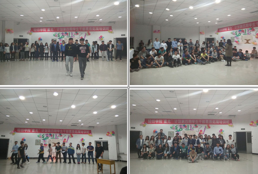 为进一步增强学生干部的团队协作能力,加强学生干部之间的交流合作,轻工与纺织学院开展“星光计划”第四期学生干部素质拓展培训班,4月26日,学院举行素质拓展培训班毕业典礼。学院相关老师及第十一届团总支学生会的全体成员参加典礼。 典礼上,学院为培训班学员颁发结业证书,同时学生干部素质拓展班的同学们以及第十一届团总支学生会的成员们为同学们带来歌舞、小品、合唱、朗诵等节目。 学生干部素质拓展的培训不仅有力地推动了学院学生干部素质拓展活动的开展,同时还让同学们认识到自我的价值,发现自身的问题,激发个人潜能,促进了团队意识的形成,锻炼了战胜困难的毅力与恒心,并掌握多种思维方式,克服传统思想的局限性,从多个角度看问题和发现问题的能力得到了提升。 (供稿:轻工与纺织学院 摄影:轻工与纺织学院 编辑:安炜丹)