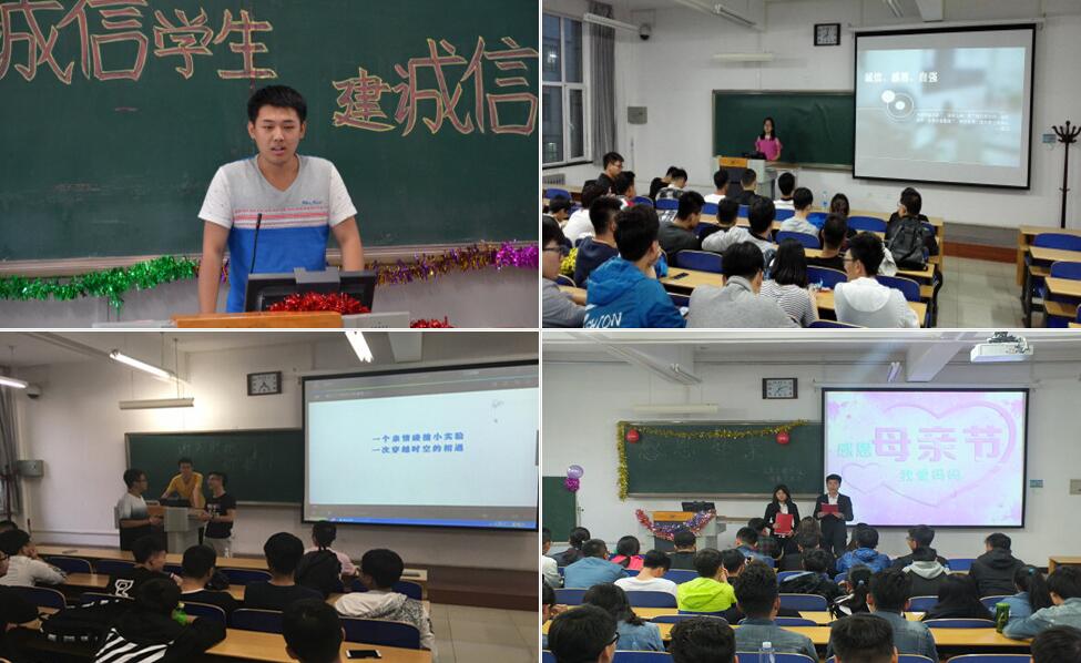 系列活动包含“扬感恩之帆、掌自强之舵、树诚信之旗”DV秀,引导学生发自内心的表达了对学校的感激之情、对老师的浓浓深情,感激社会的关爱、父母的培养、同学的帮助;“感恩母亲”母亲节专题活动唤起了同学们埋藏内心深处的感恩情怀,感激母亲为自己所做的一切,坚定要以学习成绩和实际行动去报答父母的决心;“做诚信学生、建诚信班级、创诚信校园”主题演讲展现了当代大学生的榜样风采,激起了同学们以诚待人、以诚做事的情怀;“诚信立人、感恩立德,自强立志”主题班会,给同学们提供了一次展现自我和锻炼自我的机会,充分调动了同学们的积极性;“谢天谢地,你来了”情景剧发挥了寓教于乐的作用,让同学们在欢声笑语中体会到“诚信、感恩、自强”更深刻的含义。