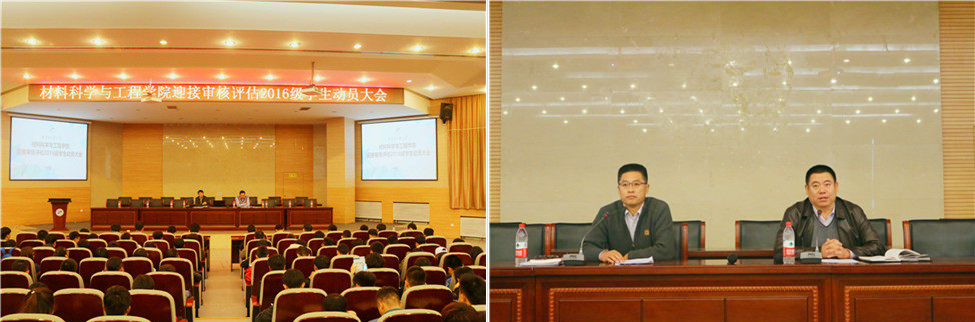 10月26日、28日,材料学院分四场召开各年级学生大会,就迎接教学审核评估做动员和工作部署。学院院长韩永全、党委书记祁龙分别做动员讲话,副院长车广东主持动员大会。学院全体辅导员、部分班主任老师参加。