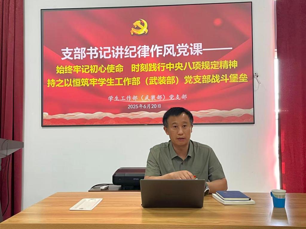 2025年6月20日,学生工作部(武装部)党支部组织支部全体党员和教职工开展支部书记讲纪律作风党课主题党日活动,机关党委委员任东明同志列席参加此次活动。